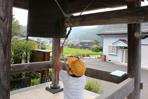 このコロナ禍の中、なんと6人の子どもたちが鐘を撞きに来てくれた。 毎年、8月6日にキッズサンガを行っている。今年は時間を大幅に短縮した。 小さな弟と一緒に撞いてくれた姉さん。 この後お話を聞いて、焼香の仕方を学んで、CDコマを作り、着せ替えの…