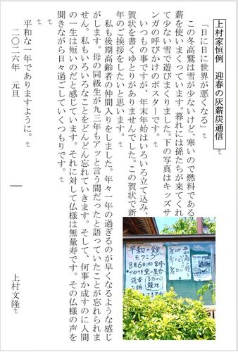 暮れから作ったトリケラトプスの雪ダルマ。恐竜好きの孫が喜ぶと思って作った。角はつららでと思ったけど、暖かくてつららが育たなかった。近所の子たちも見に来てくれてこれなんだと聞いたら、ちゃんとトリケラトプスと答えてくれた。 除夜会は近年ない暖か…