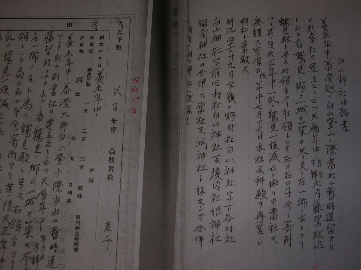 いずれも白山と関係がある。スサノオが主祭神だとすると白山よりも祇園社の方との関係があることになり昔から不思議だった。
