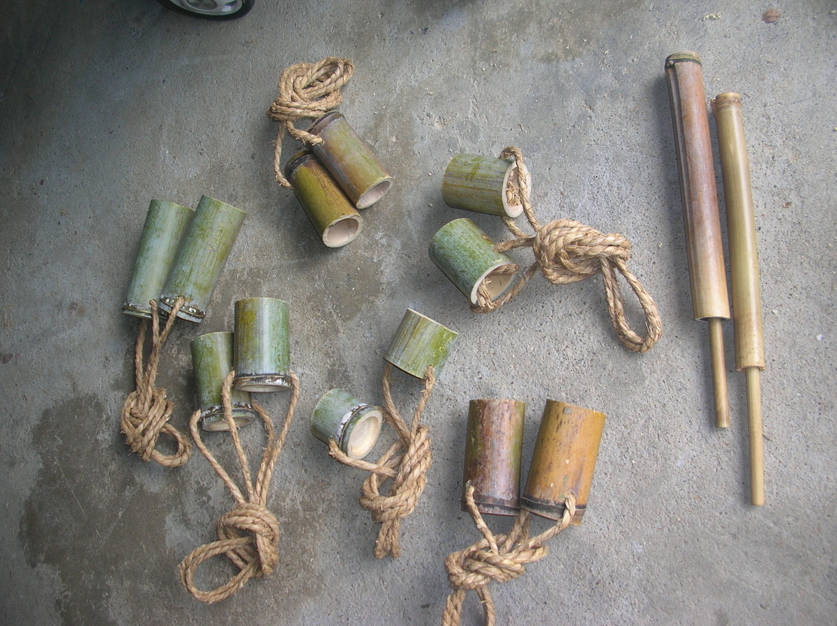 その後、竹ぽっくりをたくさん作った。