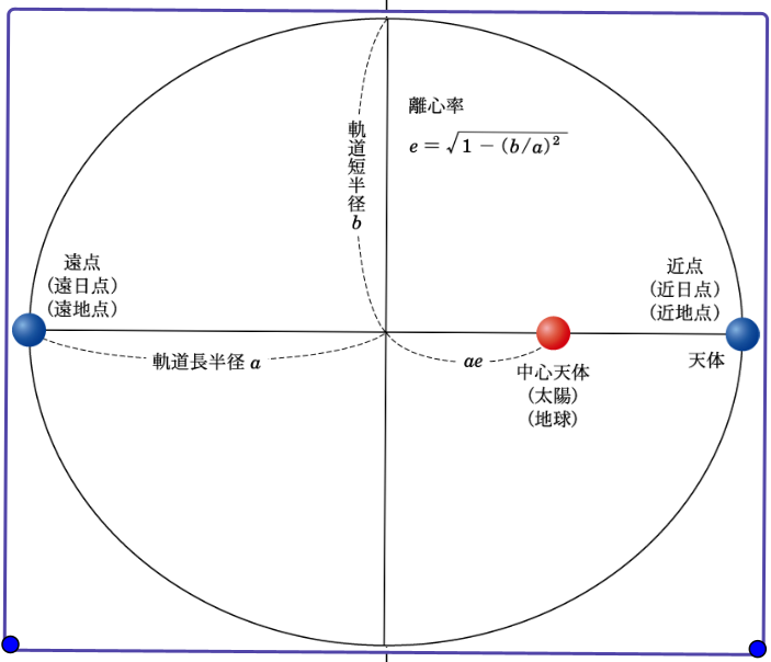 近日点で早くなるのは楕円軌道だから。楕円軌道についての図。